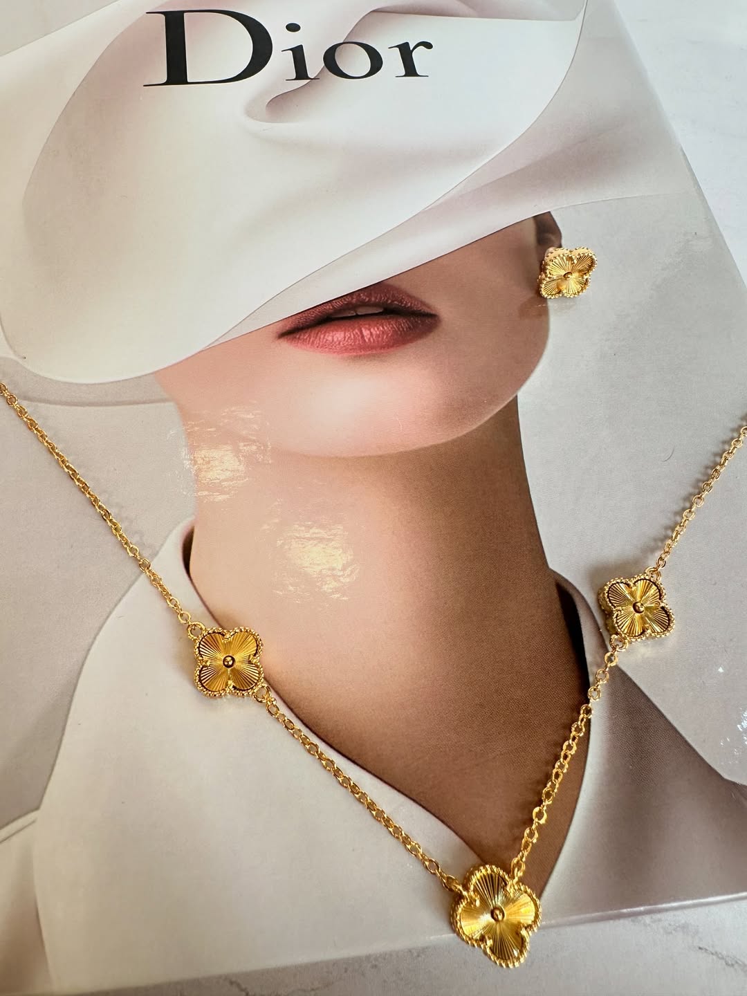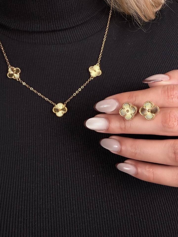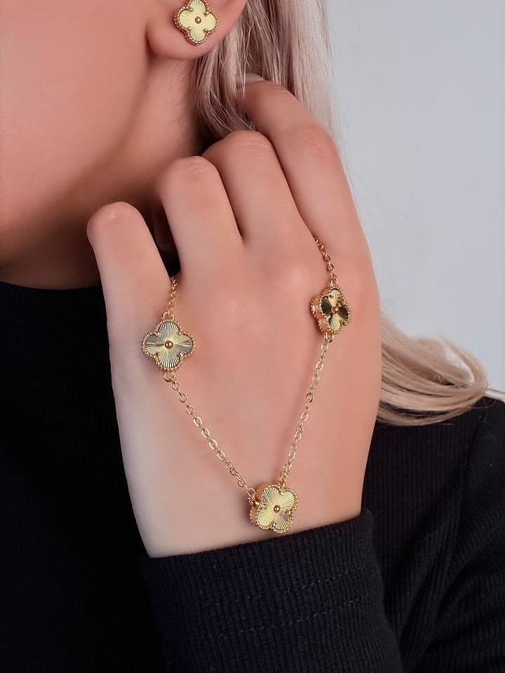 نیم ست ونکلیف سه گل گردنبند و گوشواره کپی طلا