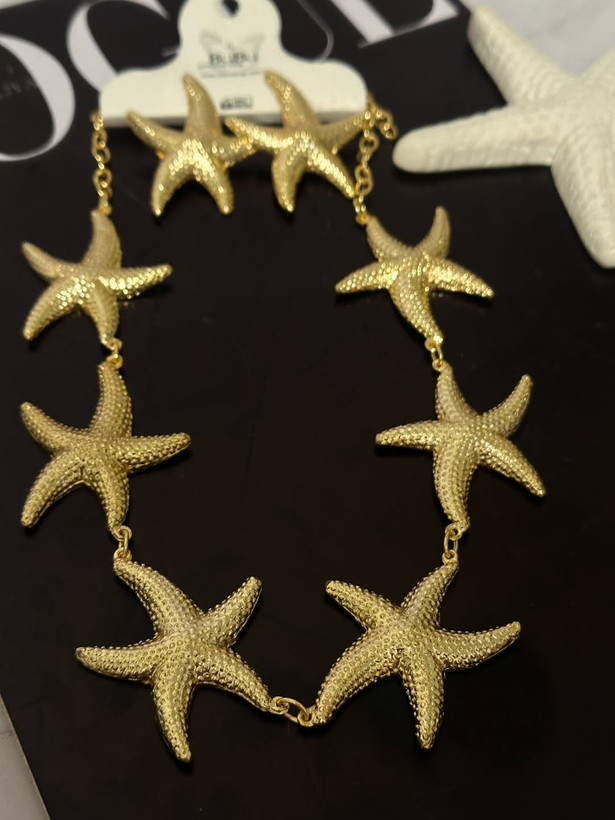 ست گردنبند و گوشواره زنانه ورشو طلایی ستاره دریایی