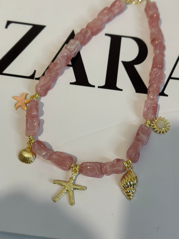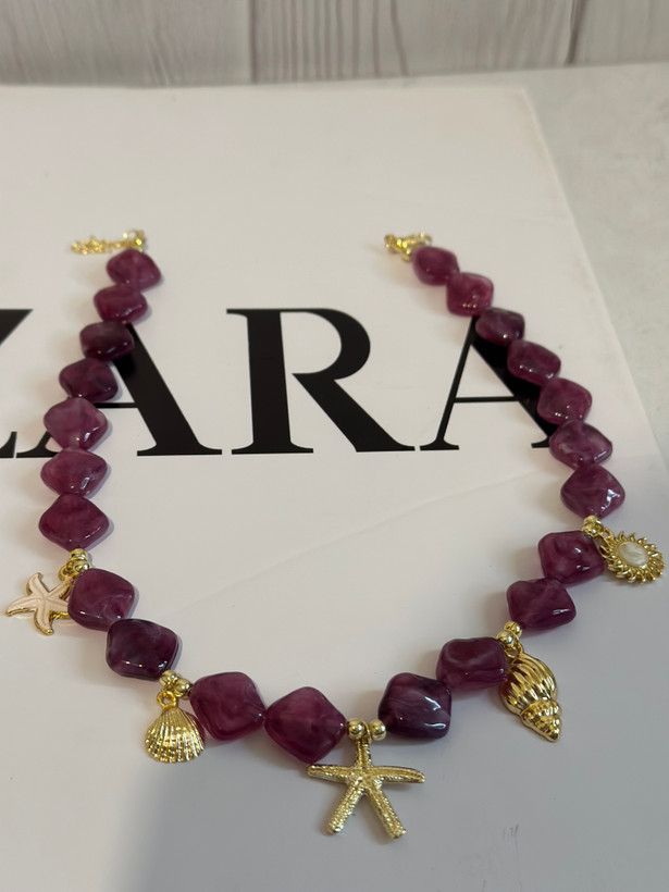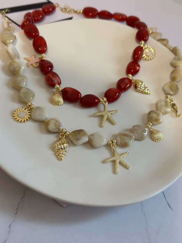 گردنبند زنانه سنگی آویز دار(چارم دار)ستاره و صدف