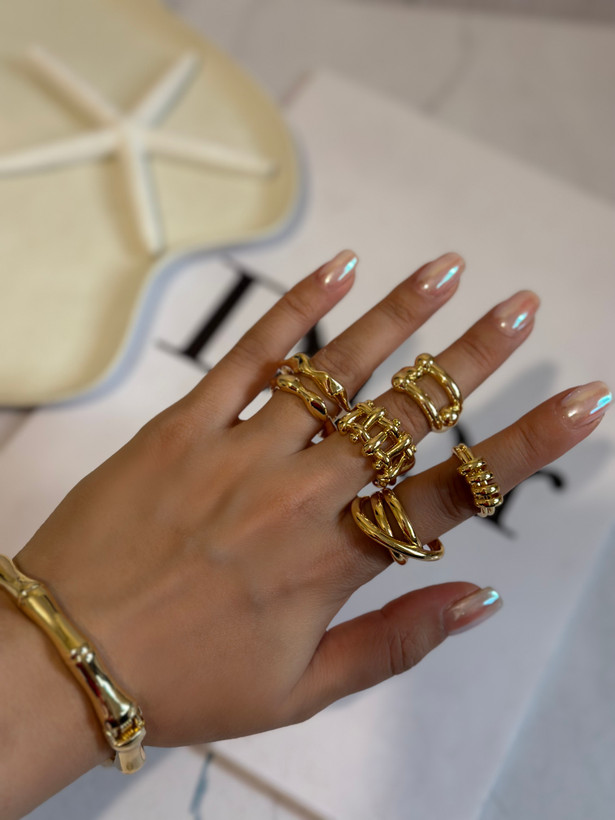 انگشتراي طلايي مينيمال و شيك با كيفيت عالي بهترين انتهاب براي استايلهاي روزمره ، كاملا همرنگ طلا👌🌟
