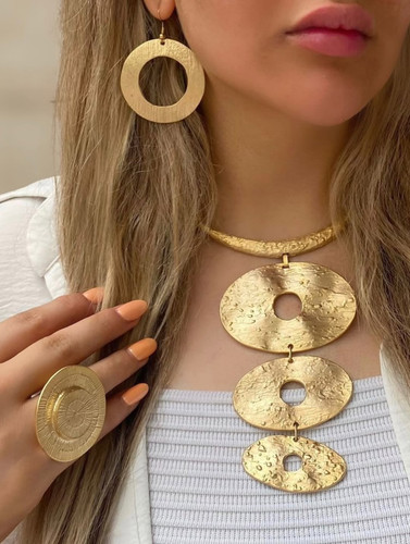 نیم ست ونکلیف گردنبند و گوشواره و انگشتر تراش طلایی