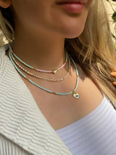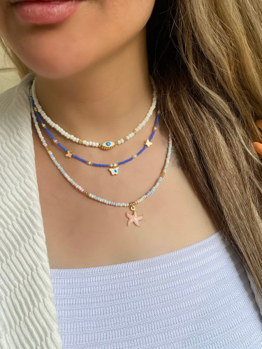 گردنبند زنانه مهره ای سه رج آویز ستاره