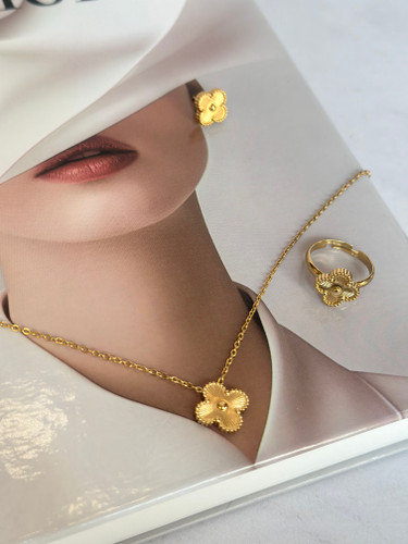 نیم ست ونکلیف سه گل گردنبند و گوشواره
