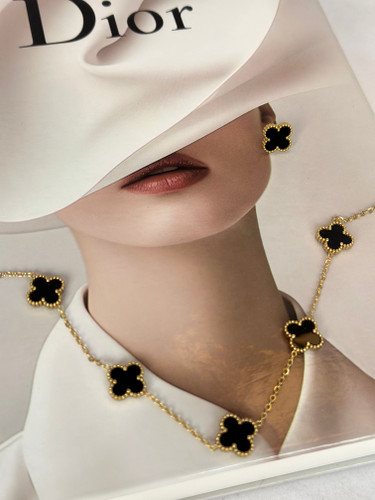 گردنبند تک زنانه ونکلیف مشکی طلایی ۵ گل